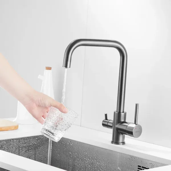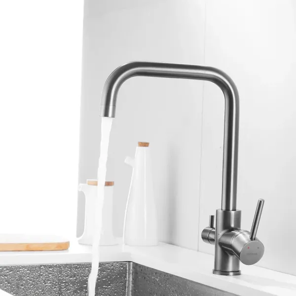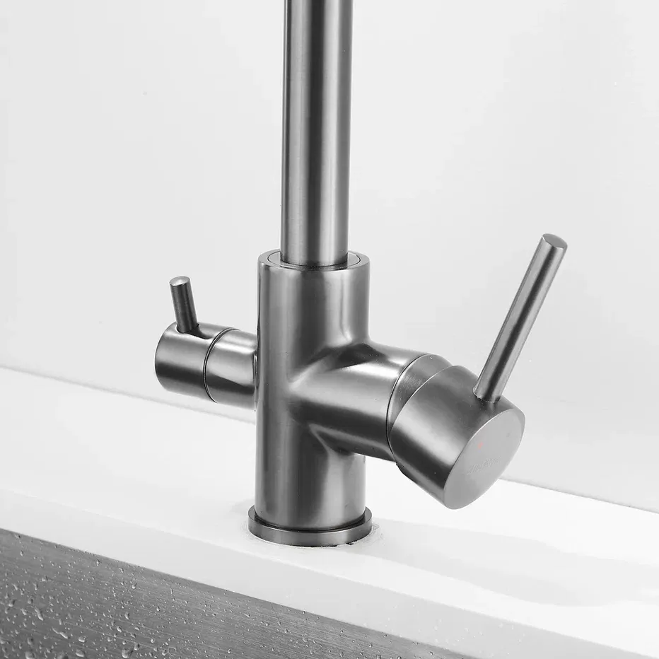 Смеситель для кухни с подключением фильтра Shevanik S228T, оружейная сталь.Управление: рычажное.Вращение излива: да.Выдвижной излив: нет.Гибкий излив: нет.Высота:33.