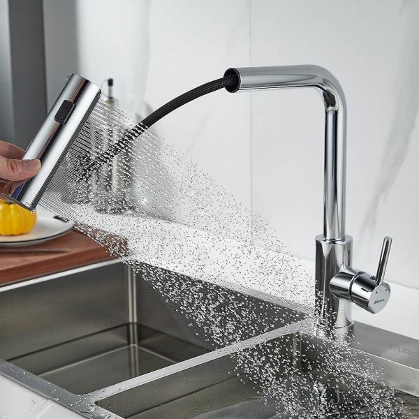 Одним из ключевых преимуществ данного смесителя является съемный выдвижной поворотный излив, который можно легко снять и повернуть в любую сторону. Излив доступен в том же цвете, что и корпус смесителя, что позволяет ему идеально сочетаться с любым кухонным интерьером.