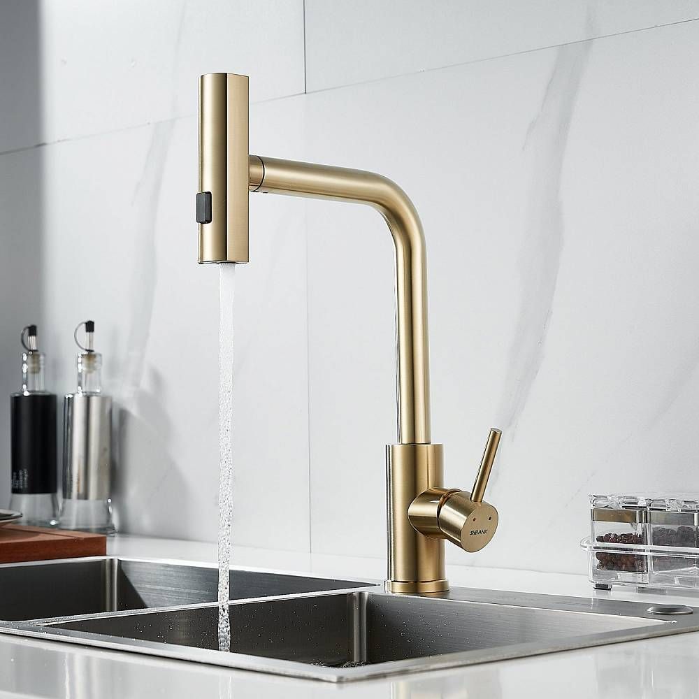 Смеситель для кухни Shevanik S263G с мультифункциональным изливом золотой сатин купить