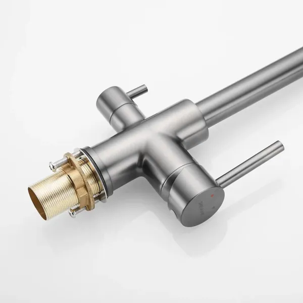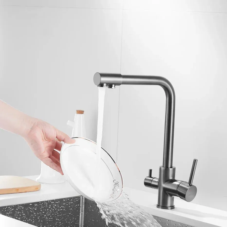Смеситель для кухни с подключением фильтра Shevanik S328T, оружейная сталь.Управление: рычажное.Вращение излива: да.Выдвижной излив: нет.Гибкий излив: нет.Высота:33.