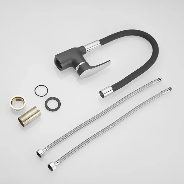 Смеситель для кухни с гибким изливом Shevanik S443-3, черный.Управление: рычажное.Вращение излива: да.Выдвижной излив: нет.Гибкий излив: да.Высота:36,5.
