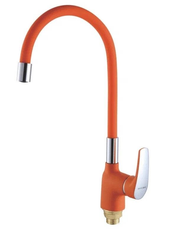 Смеситель для кухни с гибким изливом Shevanik S443-4, оранжевый.Управление: рычажное.Вращение излива: да.Выдвижной излив: нет.Гибкий излив: да.Высота:36,5.