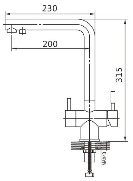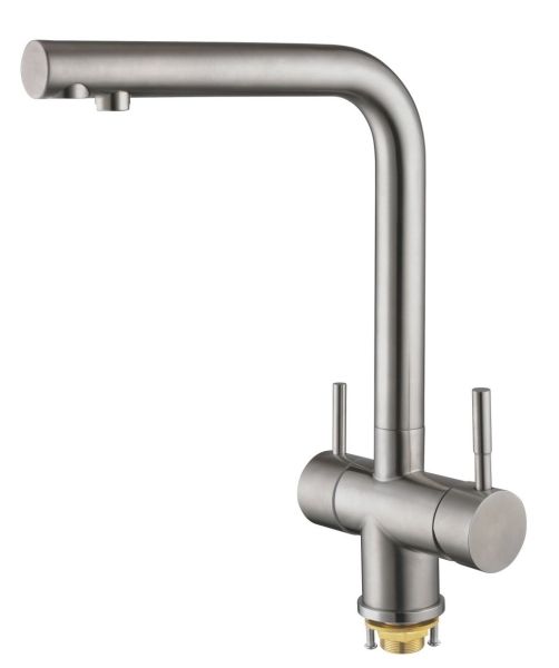 Смеситель для кухни с подключением фильтра Shevanik S468B, сатин.Управление: рычажное.Вращение излива: да.Выдвижной излив: нет.Гибкий излив: нет.Высота:31,5.