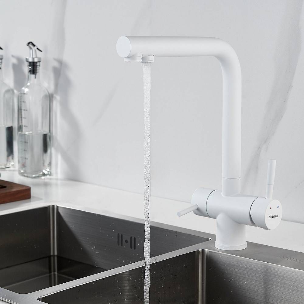 Смеситель для кухни Shevanik S468C с подключением фильтра белый купить