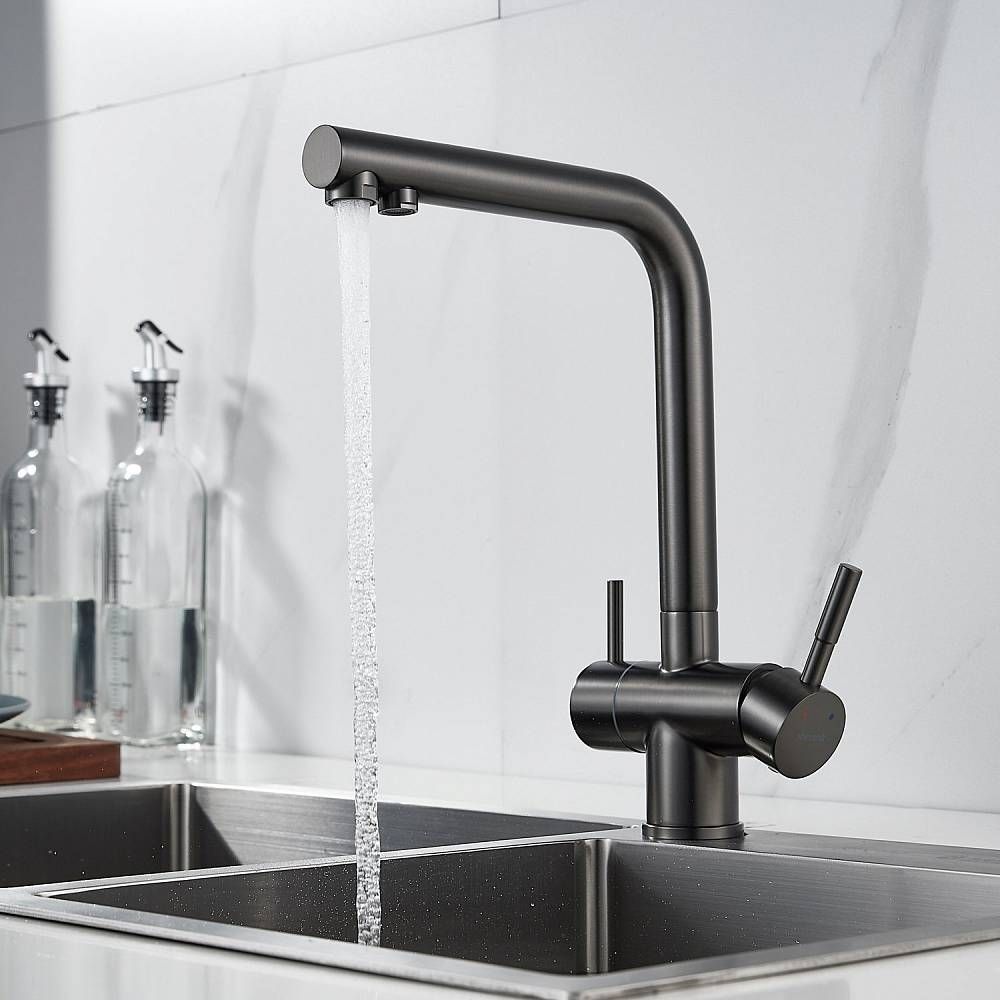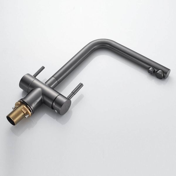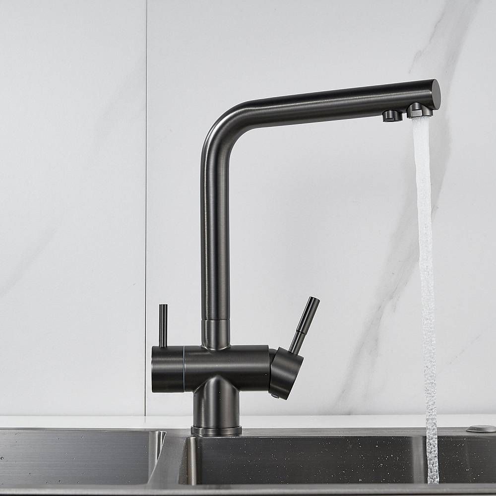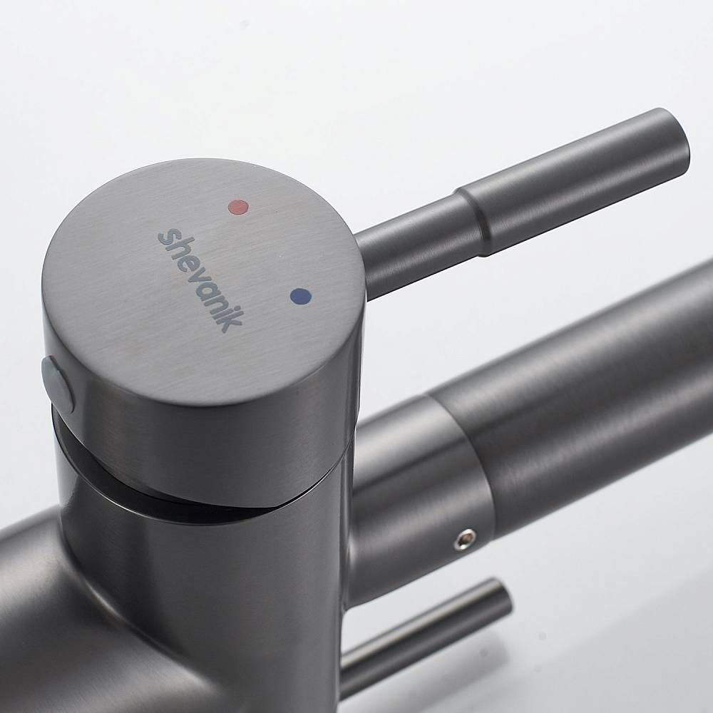 Смеситель для кухни Shevanik S468T - идеальный выбор для вашей кухни, выполненный в цвете оружейной стали, он придаст особый шарм интерьеру. Высокий поворотный излив обеспечивает комфортное использование, а канал для питьевой воды делает смеситель удобным для фильтрации воды. Изготовлен из прочной и долговечной латуни, смеситель гарантирует долгий срок службы. Специальное немаркое покрытие упрощает уход, а 5-летняя гарантия подтверждает качество продукта