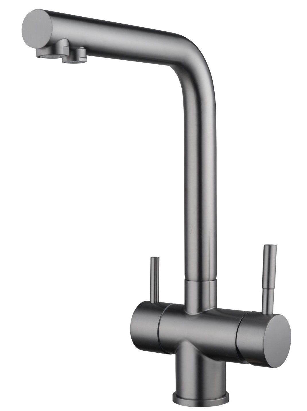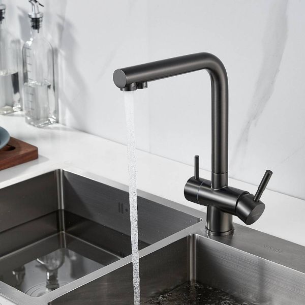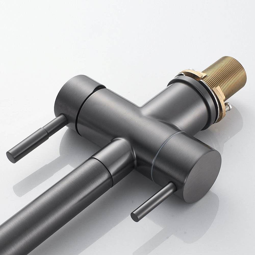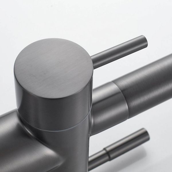 Смеситель для кухни Shevanik S468T - идеальный выбор для вашей кухни, выполненный в цвете оружейной стали, он придаст особый шарм интерьеру. Высокий поворотный излив обеспечивает комфортное использование, а канал для питьевой воды делает смеситель удобным для фильтрации воды. Изготовлен из прочной и долговечной латуни, смеситель гарантирует долгий срок службы. Специальное немаркое покрытие упрощает уход, а 5-летняя гарантия подтверждает качество продукта