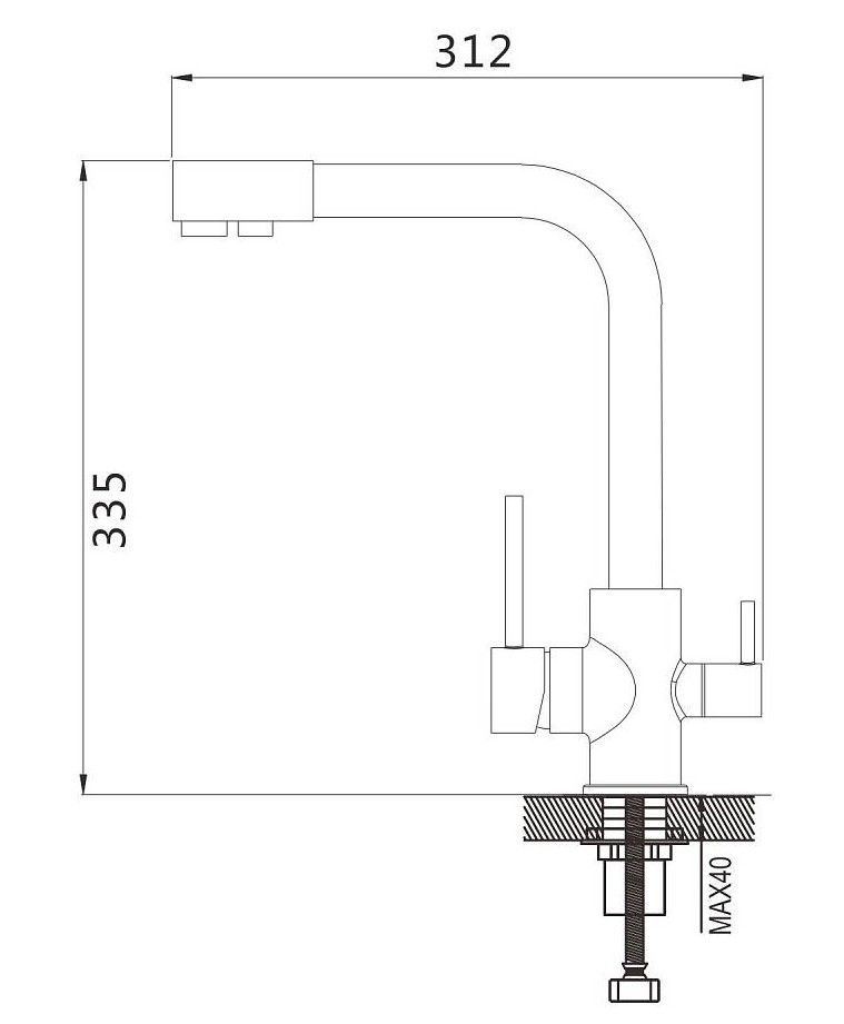 Смеситель для кухни с подключением фильтра Shevanik S868H, черный.Управление: рычажное.Вращение излива: да.Выдвижной излив: нет.Гибкий излив: нет.Высота:33,5.