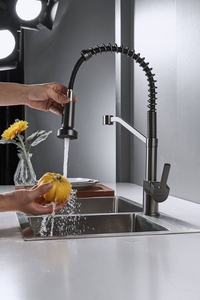 Смеситель для кухни с гибким изливом Shevanik S963T, оружейная сталь.Управление: рычажное.Вращение излива: да.Выдвижной излив: нет.Гибкий излив: да.Высота:44.