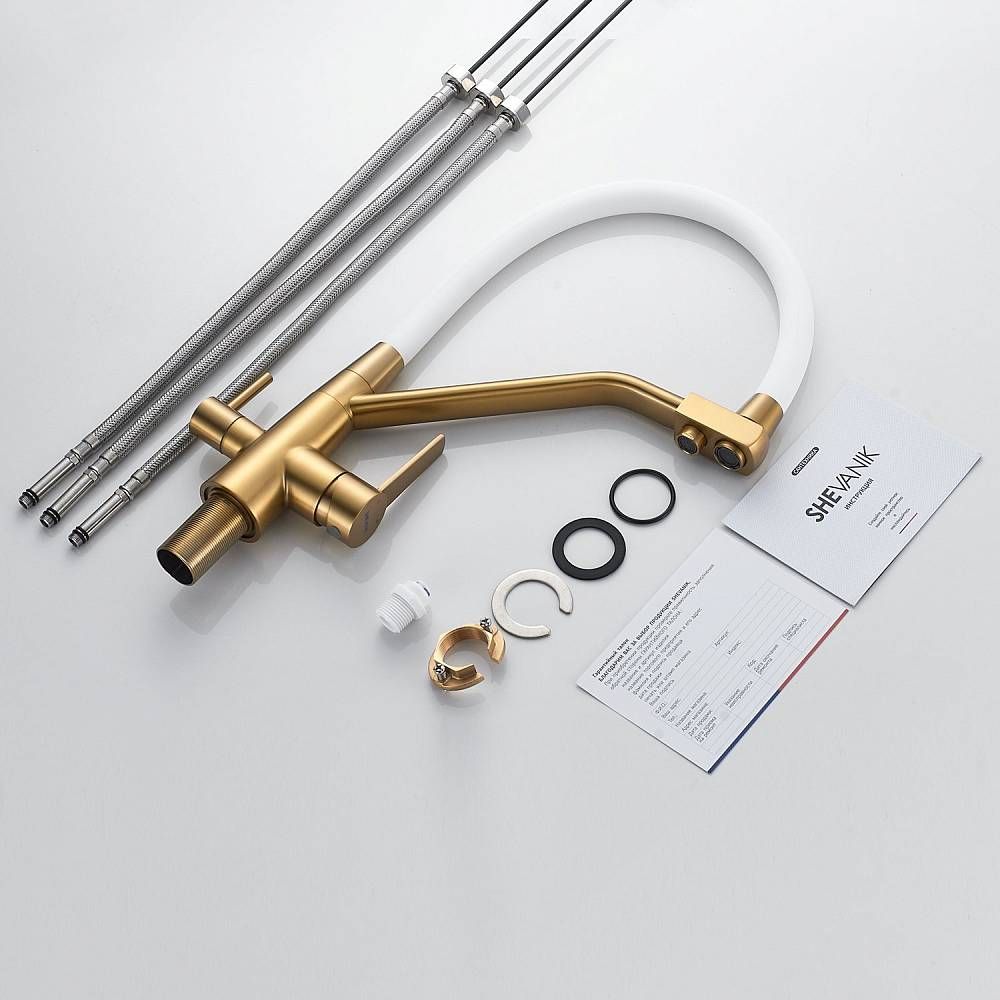 Смеситель для кухни Shevanik S968G с подключением фильтра золото купить