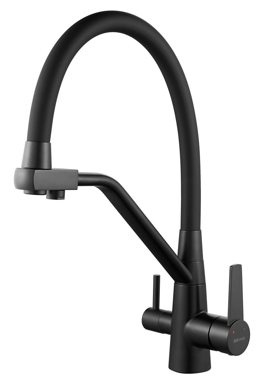 Смеситель для кухни с подключением фильтра и гибким изливом Shevanik S968H, черный.Управление: рычажное.