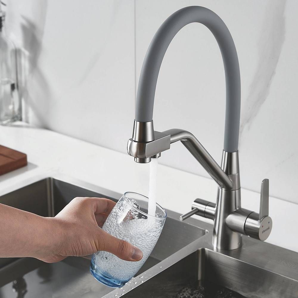 Смеситель для кухни Shevanik S968L с подключением фильтра сатин купить