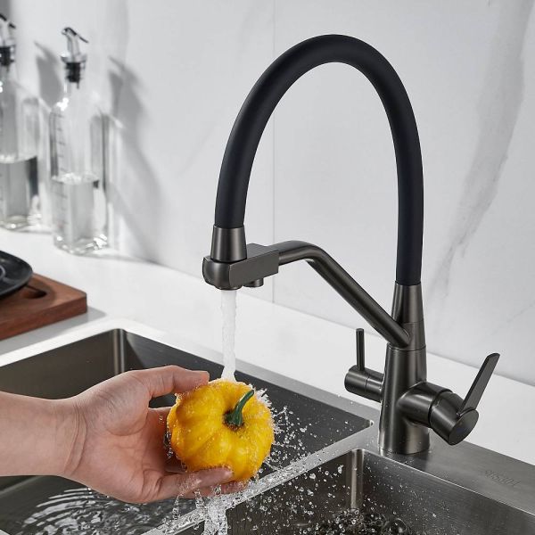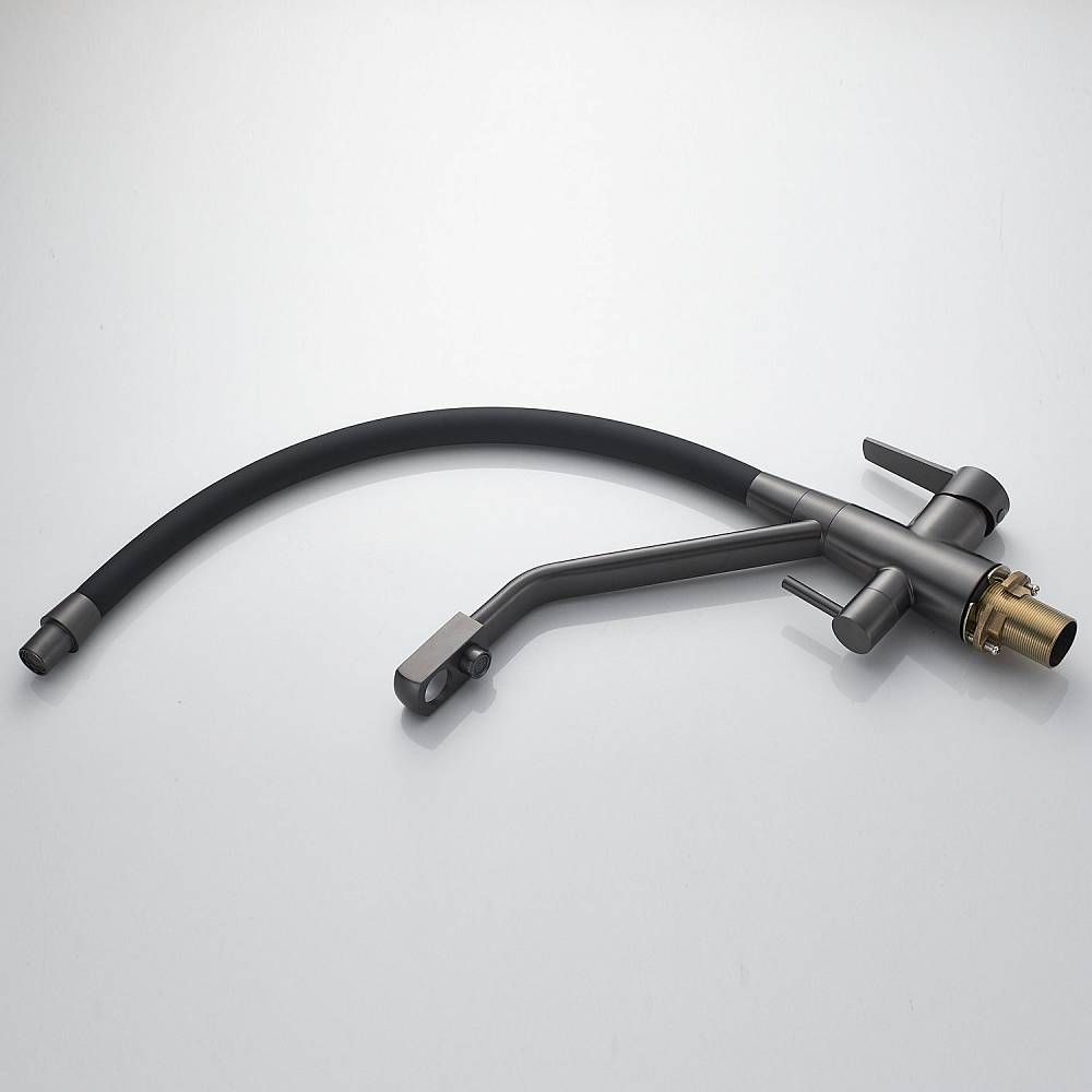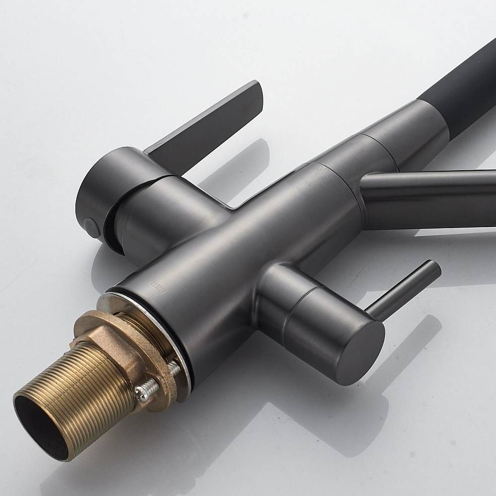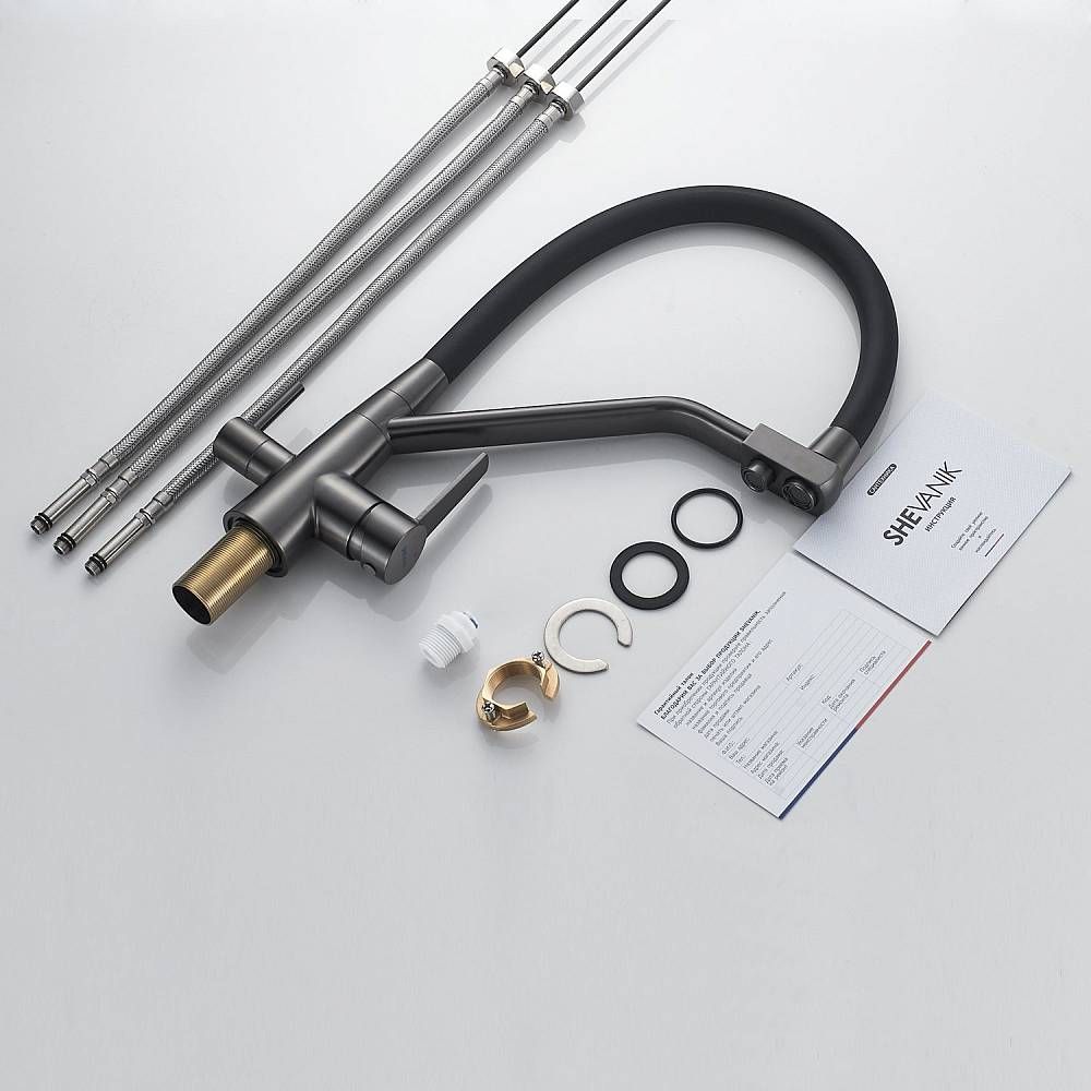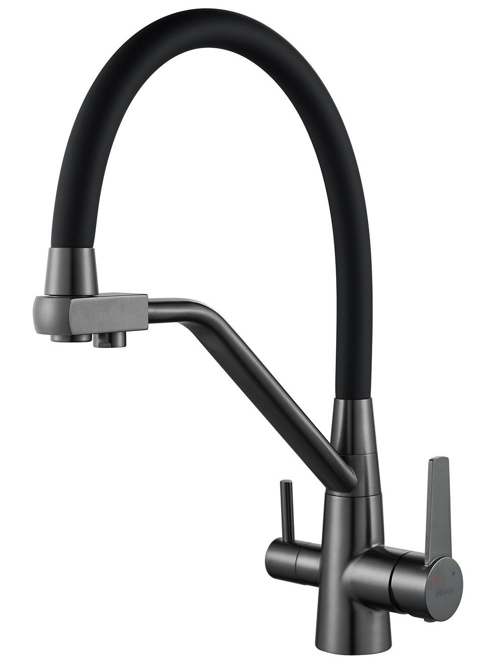 Смеситель для кухни с подключением фильтра и гибким изливом Shevanik S968T, оружейная сталь.Управление: рычажное.