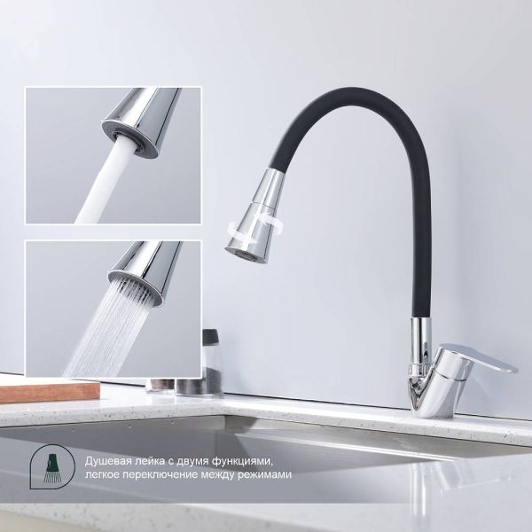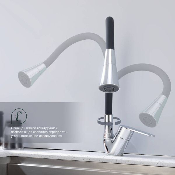 Смеситель для кухни Splenka S07.43 идеально подходит для кухонной мойки, раковины любого типа. Смеситель имеет 2 режима: поток воды и душ. Смеситель с гибким изливом имеет необычный внешний вид и особую конструкцию. С помощью гибкого шланга можно самостоятельно регулировать глубину выноса и высоту излива, что позволит избежать лишнего разбрызгивания воды. Также с помощью силиконового излива не составит труда добраться до всех мест в мойке, а также упрощает мытье посуды и продуктов. Стильный латунный смеситель имеет свойство шумоподавления.