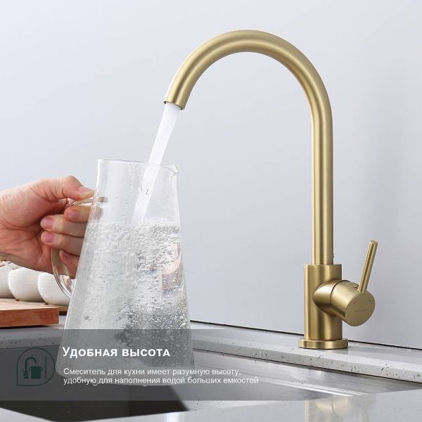 Смеситель для кухни Splenka S201.40.03. Цвет: сатин золотой. Смеситель для кухни сочетает в себе удобную конструкцию, простоту в установке, универсальный современный дизайн и доступную цену за высокое качество.Смеситель превосходно дополнит интерьер любой кухни. В набор входит гибкая подводка размером 1/2". Монтаж на гайку. Тип подводки – гибкий. Обслуживание одного потребителя. Без температурных ограничений. Монтаж на одно отверстие.