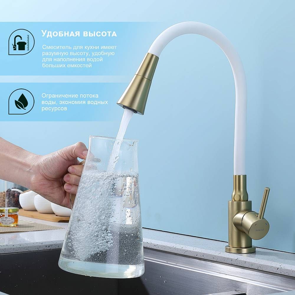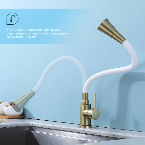 Смеситель для кухни Splenka S201.4308.03, цвет - сатин золотой. Данный кухонный смеситель с аэратором - идеальный выбор для тех, кто ищет надежное и функциональное оборудование для своей кухни. Он обладает рядом преимуществ, которые позволяют использовать его с максимальной эффективностью. Кран выполнен из высококачественных материалов, что гарантирует его долговечность и надежность. Он прекрасно подойдет для использования в условиях повышенной влажности и температуры. Кроме того, обеспечивает плавное регулирование потока воды, что позволяет экономить воду и создавать комфортные условия для приготовления пищи. Стильный и современный дизайн смесителя позволяет ему легко вписаться в любой интерьер кухни. Оснащен гибкой системой подключения, что облегчает его монтаж и установку. Он также имеет поворотный излив, который позволяет направлять струю воды в нужном направлении. Кухонный смеситель является неотъемлемой частью любой кухни, и данный смеситель - отличный выбор для тех, кто ценит качество, надежность и комфорт. Гарантия на сантехнику от производителя - 5 лет на смеситель, 2 года на покрытие.