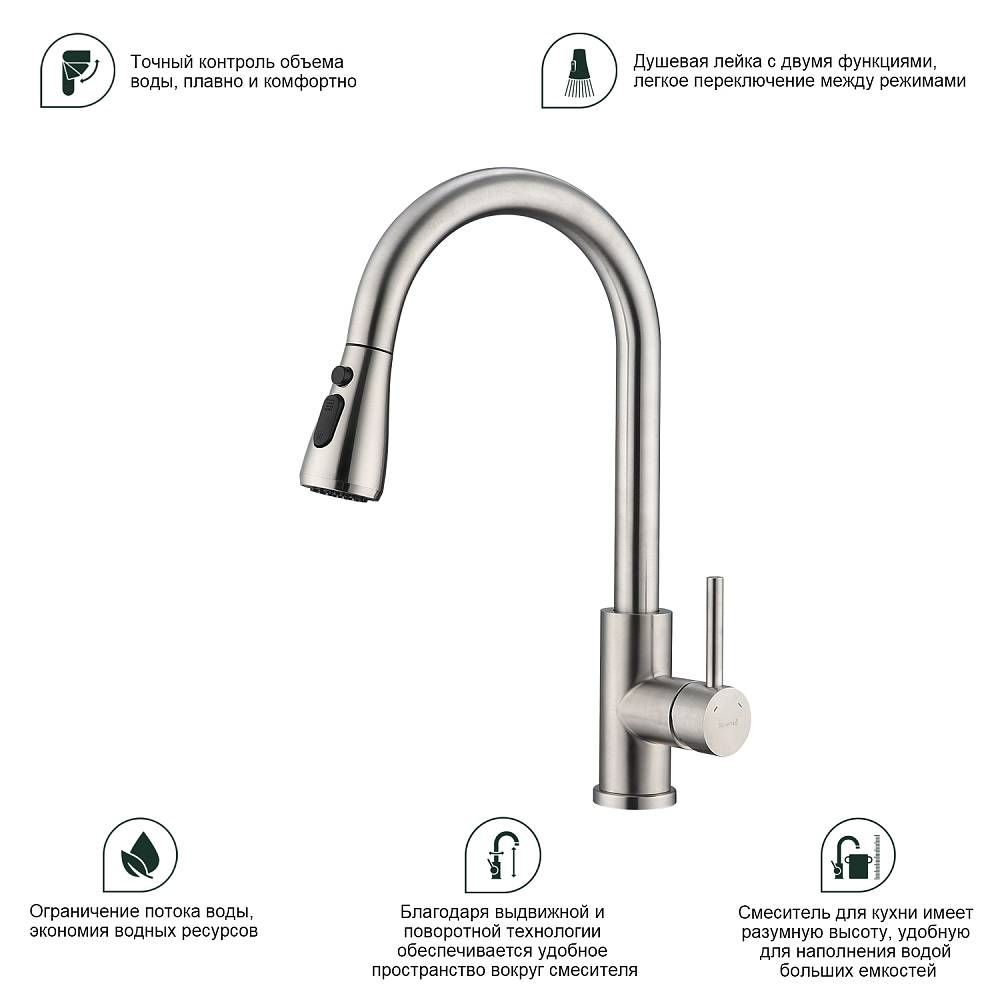 Смеситель для кухни Splenka S203.49.05 с выдвижным изливом сатин купить