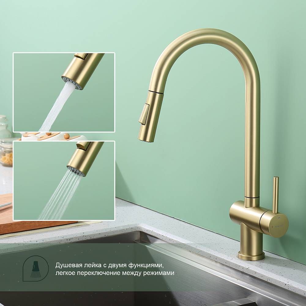 Смеситель для кухни Splenka S204.49.03 с выдвижным изливом золотой сатин купить
