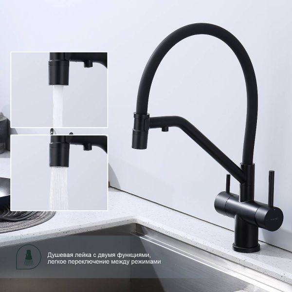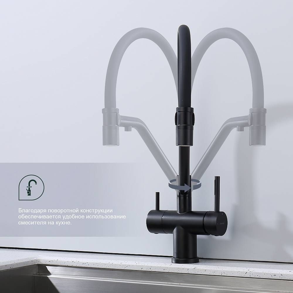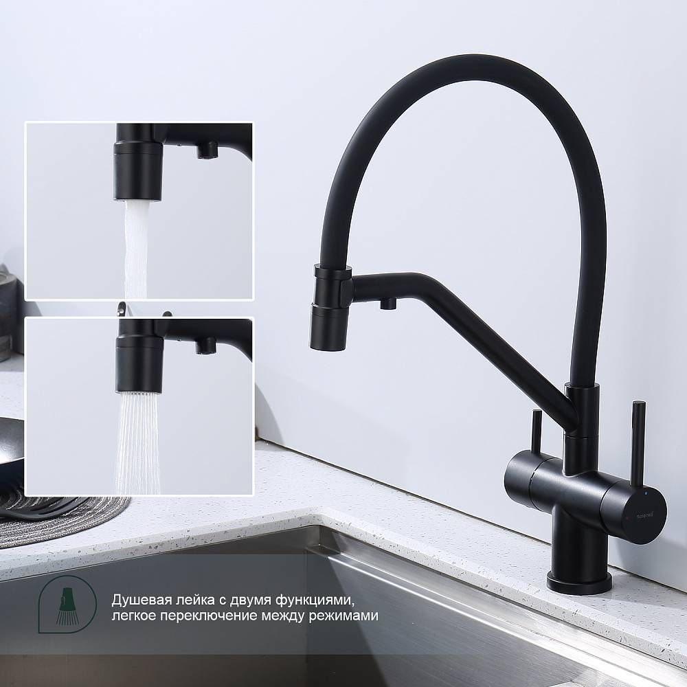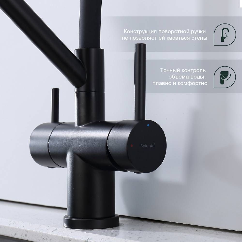Смеситель для кухни Splenka S70.62.06 с подключением фильтра чёрный купить