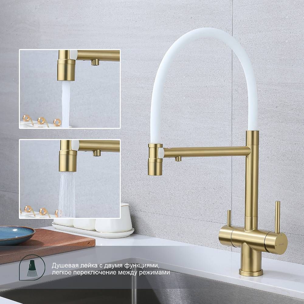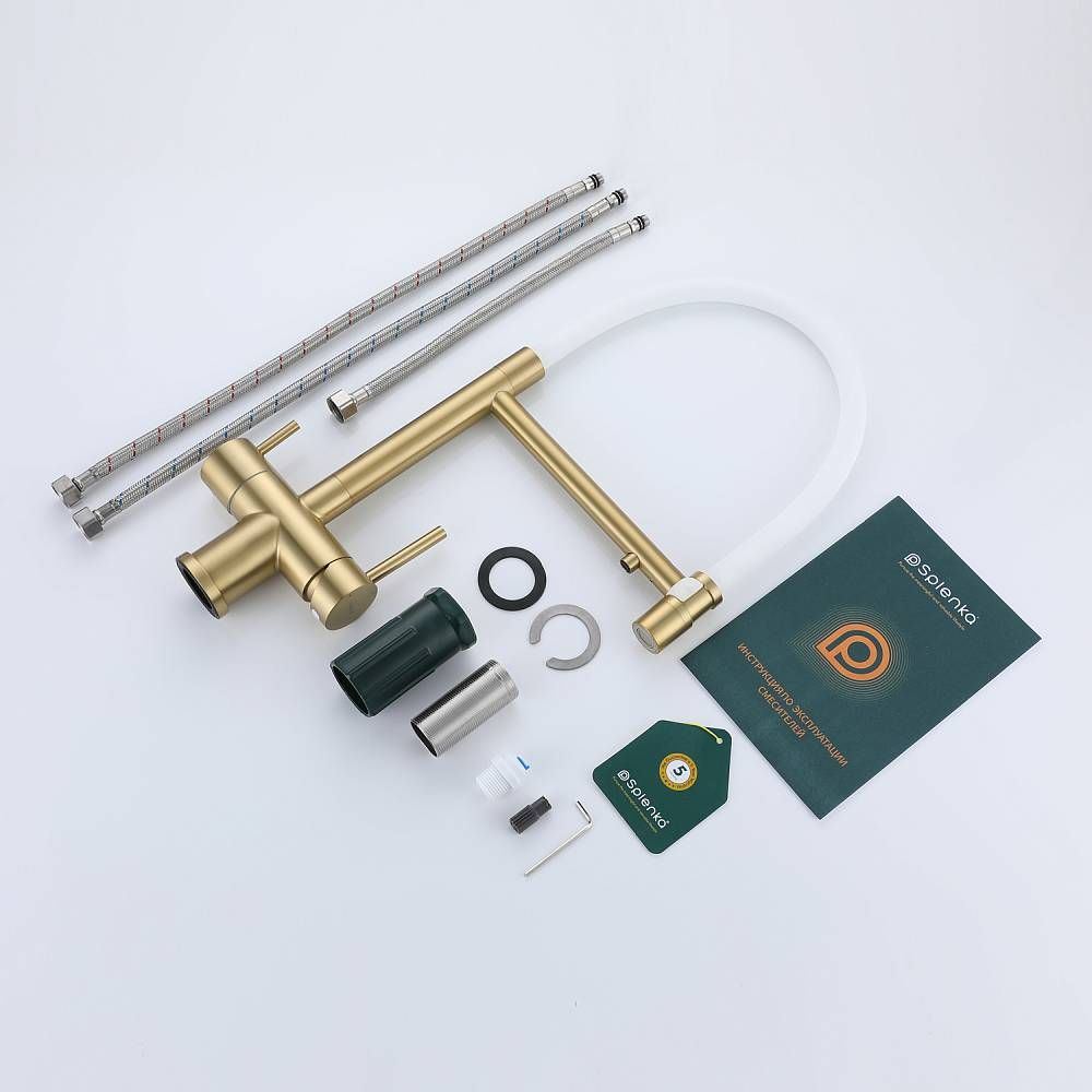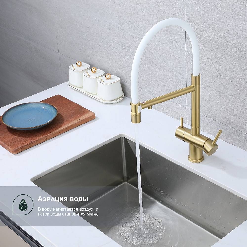 Смеситель для кухни Splenka S70.63.03 с подключением фильтра золотой сатин купить