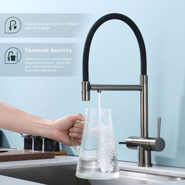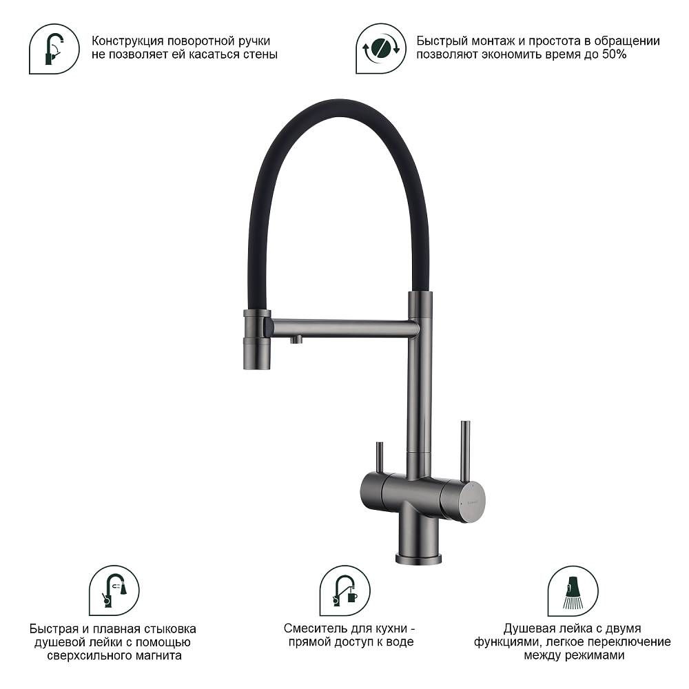 Смеситель для кухни Splenka S70.63.09 с подключением фильтра графит купить