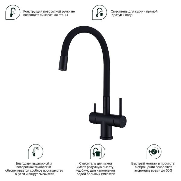 Смеситель для кухни Splenka S70.64.06 с подключением фильтра чёрный купить