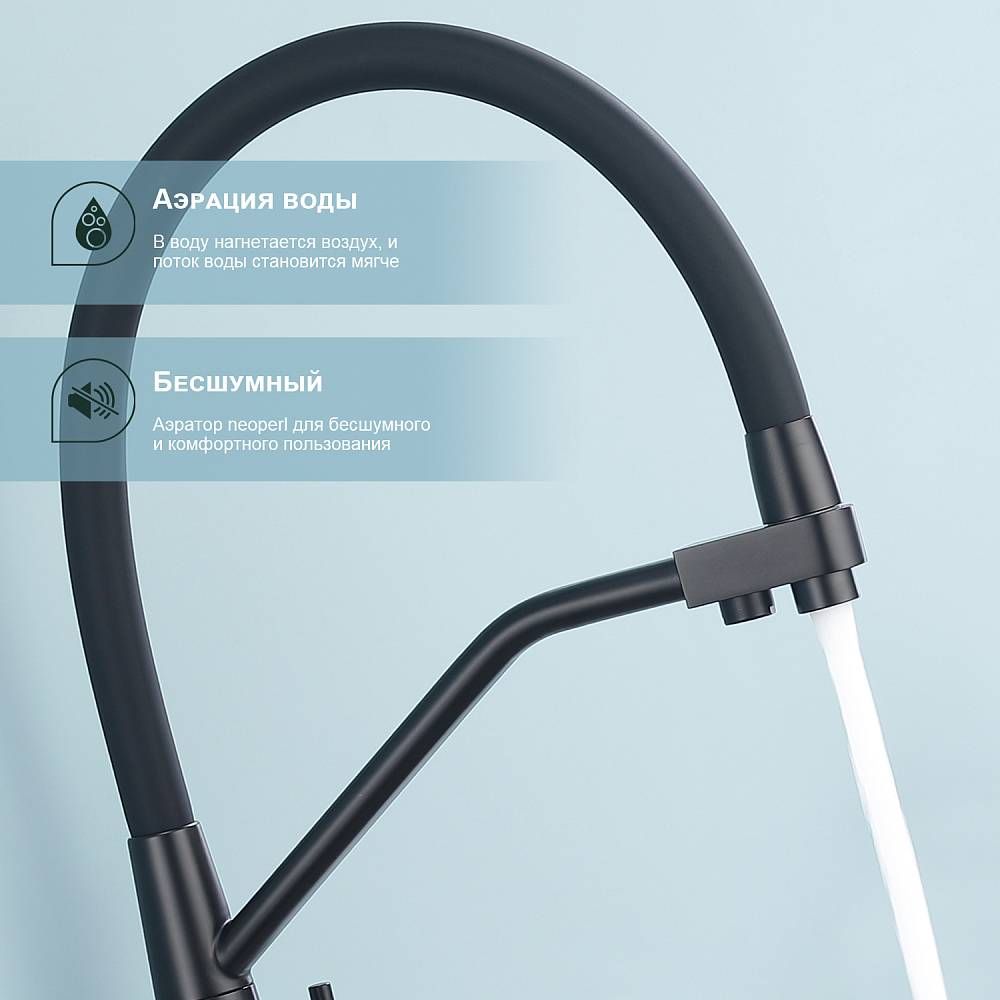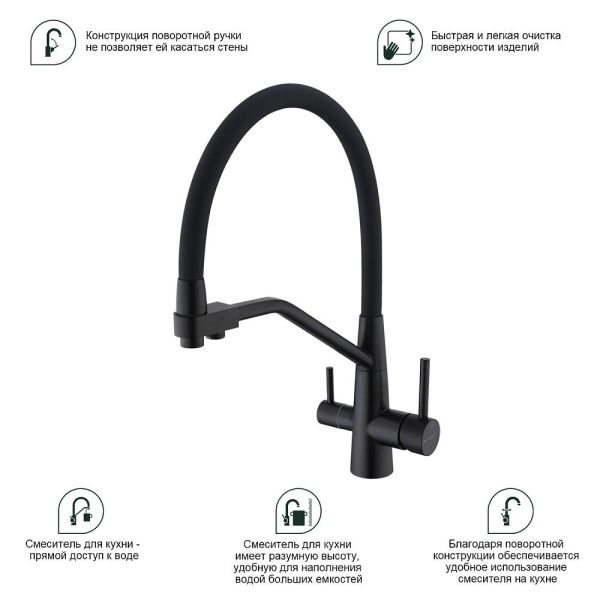 Смеситель для кухни Splenka S71.62.06 с подключением фильтра чёрный купить