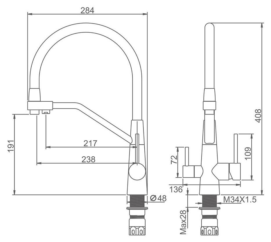 Высота смесителя:40.8