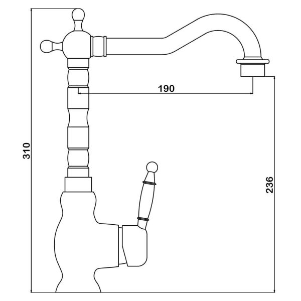 Смеситель для кухни однорычажный в классическом стилеИзлив с поворотом 360 градусов.Керамический картридж Sedal.Аэратор Neoperl.Гибкая подводка SoftPEX.Гигиенически стабильная латунь с высоким содержанием меди.Цвет: черный