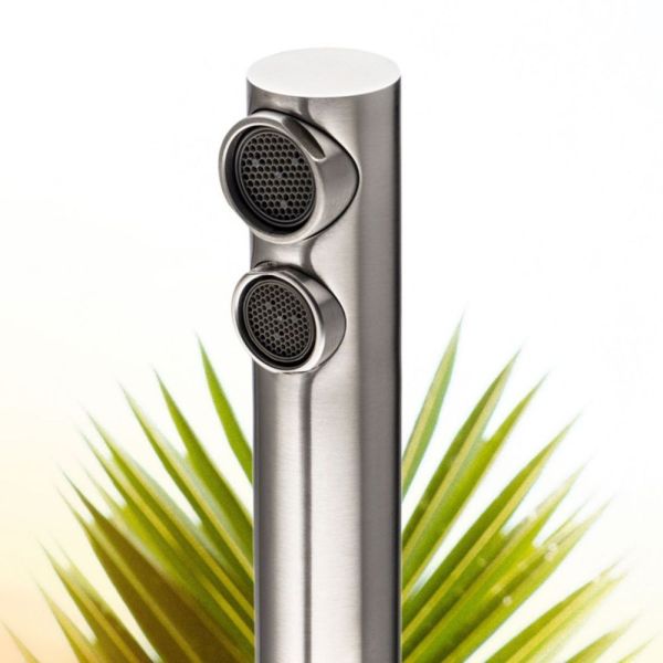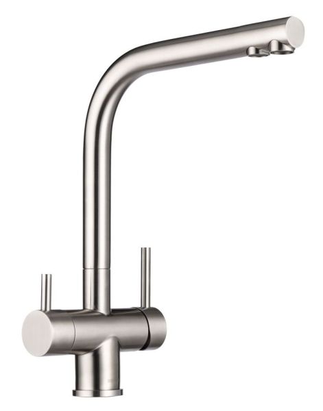 Смеситель для кухни с каналом для подключения фильтраИзлив с поворотом 360 градусов.Изготовлен полностью из пищевой нержавеющей стали (SUS304).Изолированный отдельный канал для фильтрованной воды.Керамический картридж Sedal.Гибкая подводка SoftPEX.