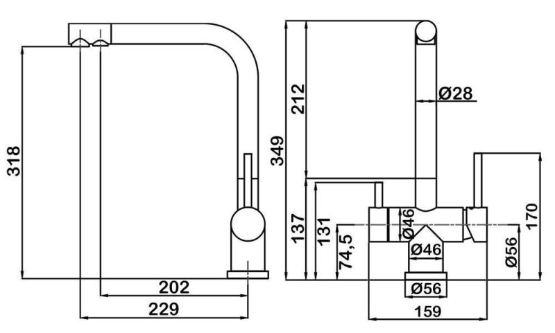 Высота смесителя:36