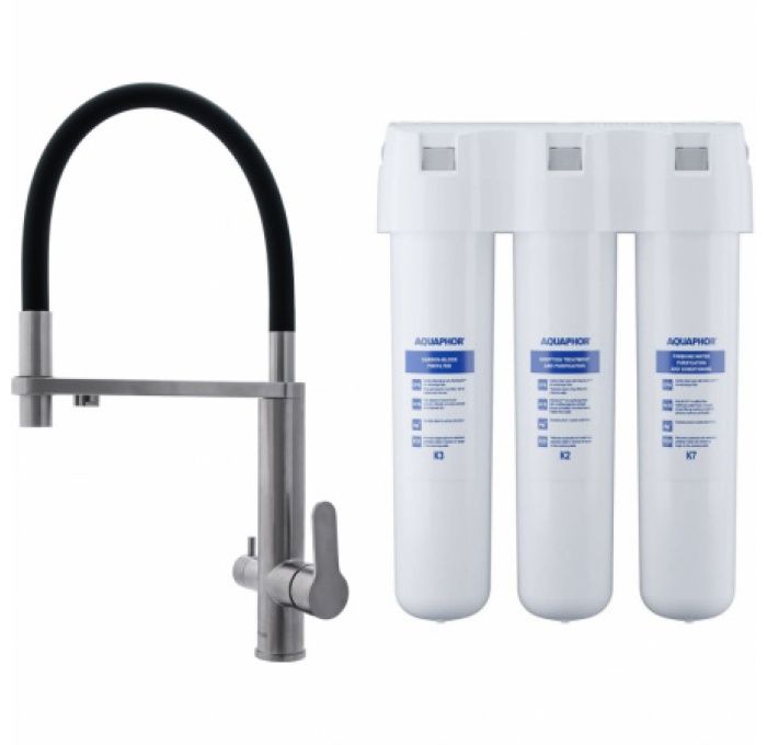 Смеситель для кухни Swedbe Selene Plus 8440K в комплекте с фильтром Аквафор Кристалл нержавеющая сталь/чёрный купить