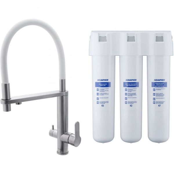 Смеситель для кухни Swedbe Selene Plus 8441K в комплекте с фильтром Аквафор Кристалл нержавеющая сталь/белый купить