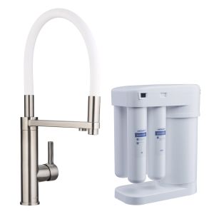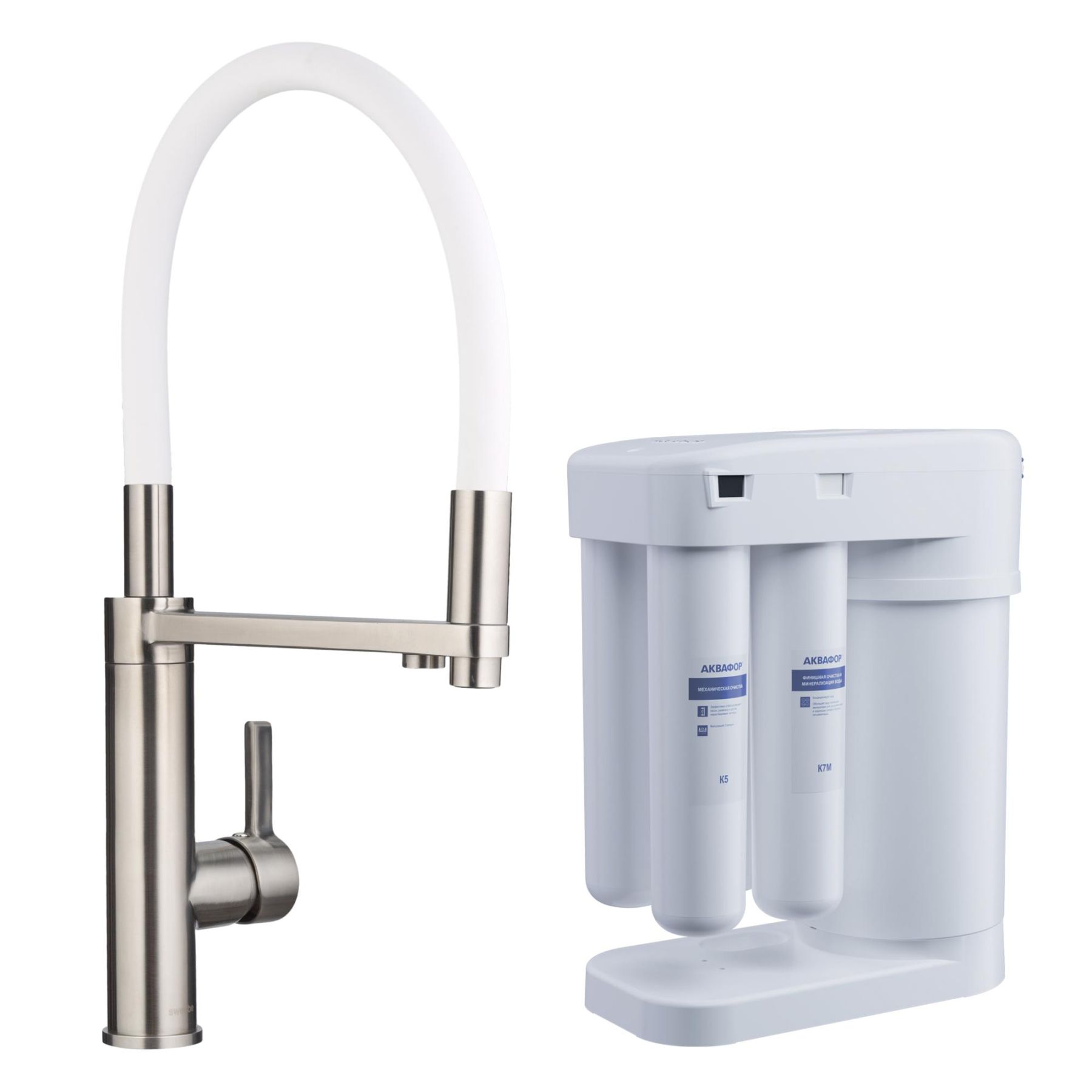 Смеситель для кухни Swedbe Selene Plus 8641M в комплекте с фильтром Аквафор Морион нержавеющая сталь/белый купить