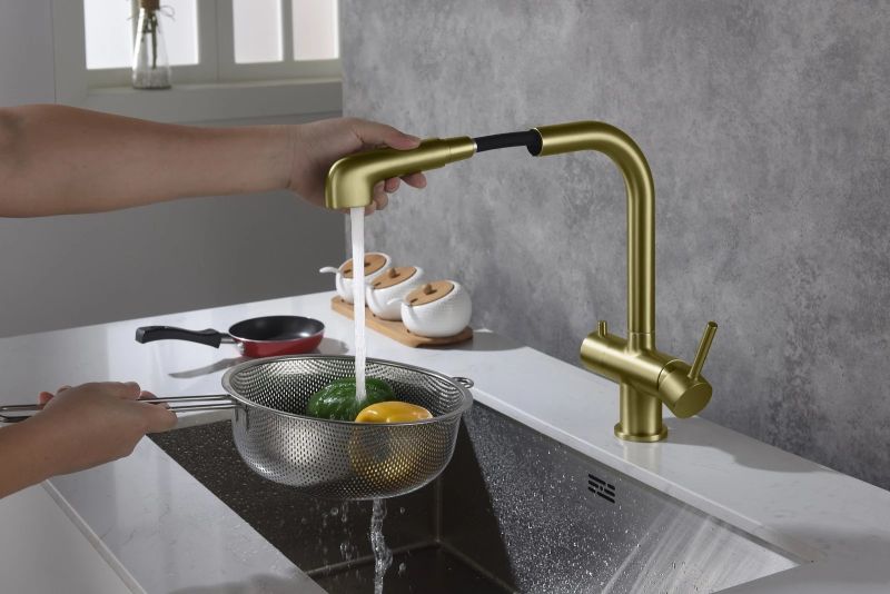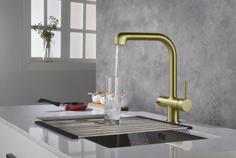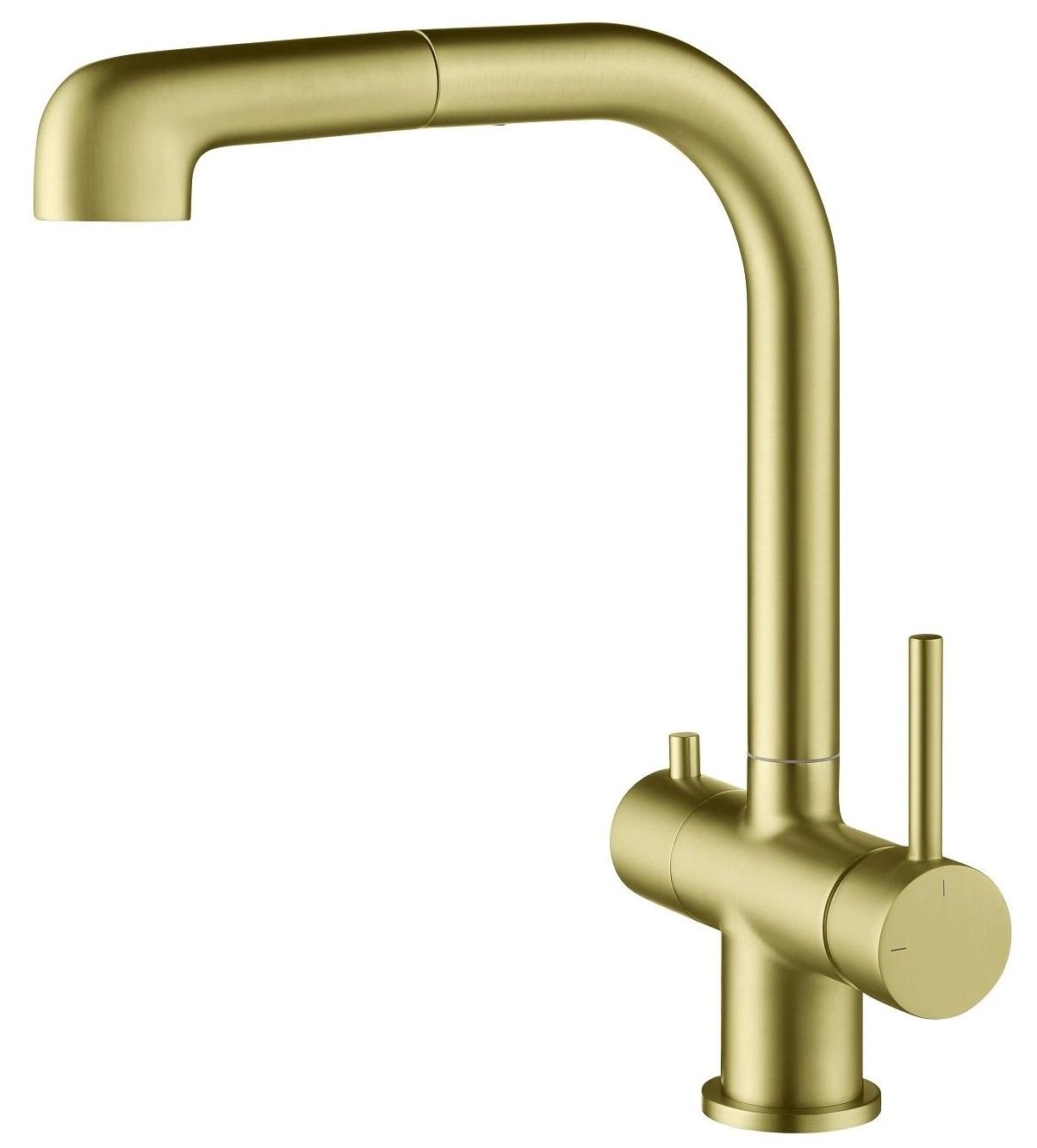Смеситель для кухни Timo Saona 2346/17FL с подключением фильтра и выдвижной лейкой золото матовое купить