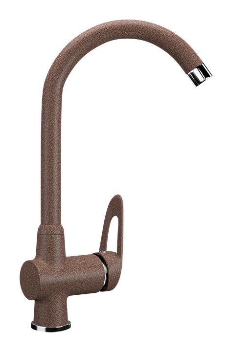 Классический кухонный смеситель с высоким поворотным изливом. Материал корпуса выполнен из высококачественной латуни, а окрашивание под искусственный камень в цвет мойки Ulgran выполняется на собственном производстве, что позволяет идеально попасть в фирменный цвет Ulgran. В качестве керамического картриджа используется известный бренд Wanhai диаметром 40 мм с высокой пропускной способностью в 500 тысяч циклов открывания-закрывания. На подвижные части картриджа Wanhai нанесена специальная невымываемая силиконовая смазка, а керамические пластины изготовлены из 96 процентов оксида алюминия, что в сочетании с высоким качеством шлифовки обеспечивает долговечность, надежность, плавность хода рукоятки. Смеситель оборудован съемным пластиковым аэратором для экономии воды и поворотным изливом на 360 градусов. В комплектацию входят: керамический картридж Wanhai, гибкая подводка 450 мм, комплект крепежных элементов, технический паспорт и гарантийный талон. Заводская гарантия составляет 3 года.