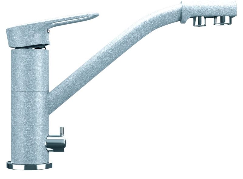 Высокоэргономичный кухонный смеситель с дополнительным краном для подключения фильтрованной воды, оснащенный кран-буксой с керамическими пластинами. Реализован тройной подвод воды через один излив: холодная, горячая и фильтрованная. Переход с одного подвода на другой производится поворотом рычага. Набор для соединения с фильтром входит в комплект. Система фильтрации приобретается дополнительно и монтируется под мойку, специальный индикатор сообщает о необходимости замены картриджа. Материал корпуса выполнен из высококачественной латуни, а окрашивание под искусственный камень в цвет мойки ULGRAN выполняется на собственном производстве, что позволяет идеально попасть в фирменный цвет ULGRAN. В качестве керамического картриджа используется известный бренд Wanhai диаметром 35 мм с высокой пропускной способностью в 500 тысяч циклов открывания-закрывания. На подвижные части картриджа Wanhai нанесена специальная невымываемая силиконовая смазка, а керамические пластины изготовлены из 96 процентов оксида алюминия, что, в сочетании с высоким качеством шлифовки обеспечивает долговечность, надежность, плавность хода рукоятки. Смеситель оборудован съемным пластиковым аэратором для экономии воды и поворотным изливом на 360 градусов. В комплектацию входят: керамический картридж Wanhai, гибкая подводка, комплект крепежных элементов, кран-букса с керамическими пластинами для дополнительного излива для фильтрованной воды, набор для подсоединения фильтра питьевой воды (гибкая подводка + переходник-цанга), технический паспорт и гарантийный талон.Заводская
