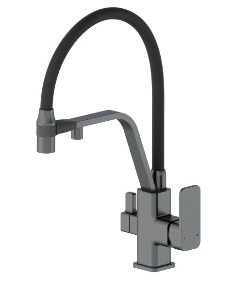 Смеситель для кухни Wonzon & Woghand WW-88458013-BGM с гибким изливом и подключением фильтра тёмный графит купить