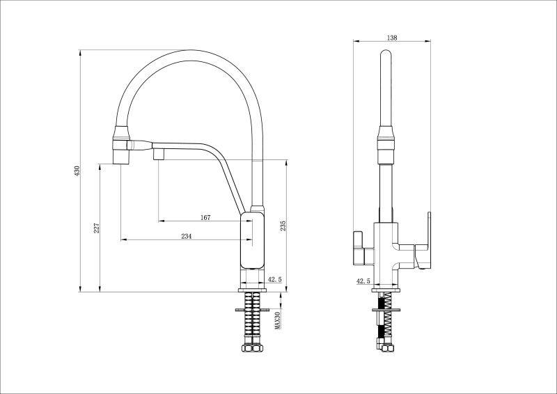 Высота смесителя:43