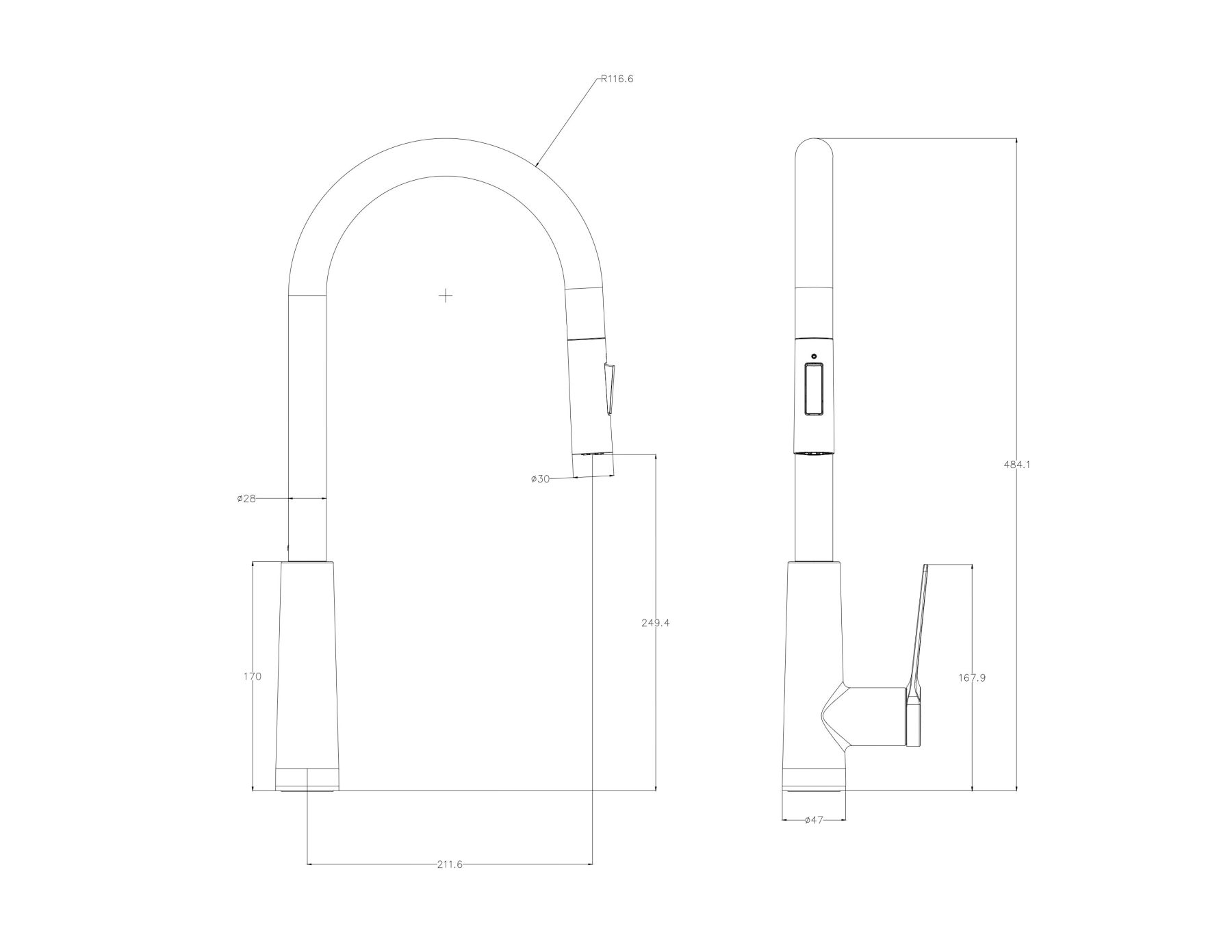 Смеситель для кухни с выдвижным изливом WONZON & WOGHAND, Темный графит (WW-A20782-BGG)