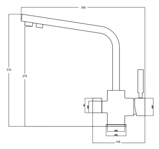 Длина излива, см:34