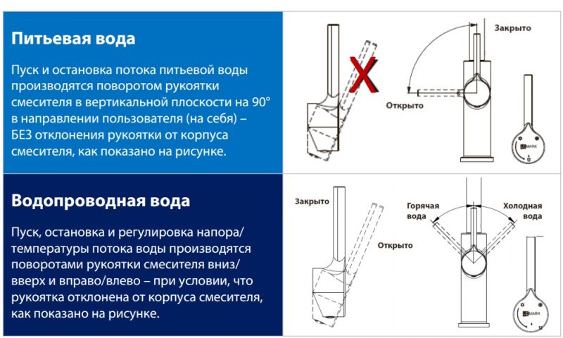 - Керамический картридж 35 мм с функцией включения питьевой воды