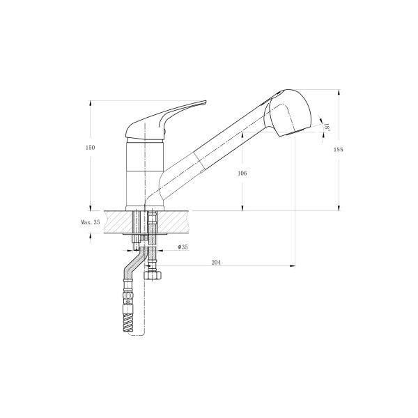 Смеситель для кухни с вытяжным изливом RUSH арт.CO4240-25 из коллекции Corsica c металлической ручкой имеет рычажное управление. В смеситель установлен картридж D-40 (RSH202) с керамическими пластинами. Высота смесителя 155 мм. Излив вытяжной поворотный 360гр, 204мм. Высота излива до аэратора 106 мм. Аэратор изготовлен из пластика с нержавеющим корпусом, угол наклона аэратора- 18 гр. В комплекте гибкая подводка с латунными гайками 35см - 2 шт, универсальная присоединительная группа (шпилька-2шт), шланг с латунными гайками 1,5м, фум-лента, индивидуальный пакет, паспорт, гарантийный талон.