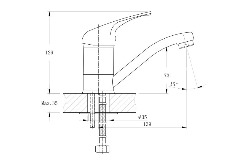 Смеситель для раковины и кухни RUSH арт. CO4240-26 с металлической ручкой из коллекции Corsica изготовлен из высококачественной латуни и имеет рычажное управление.В смеситель установлен картридж D-40 (RSH202) с керамическими пластинами. Высота смесителя 129 мм. Длина излива 139 мм. Высота излива до аэратора 73 мм. Аэратор изготовлен из пластика с нержавеющим корпусом, угол наклона - 15 гр. В комплекте универсальная присоединительная группа (шпилька-2шт), гибкая подводка с латунными гайками 35см - 2шт, фум-лента, индивидуальный пакет, паспорт, гарантийный талон.