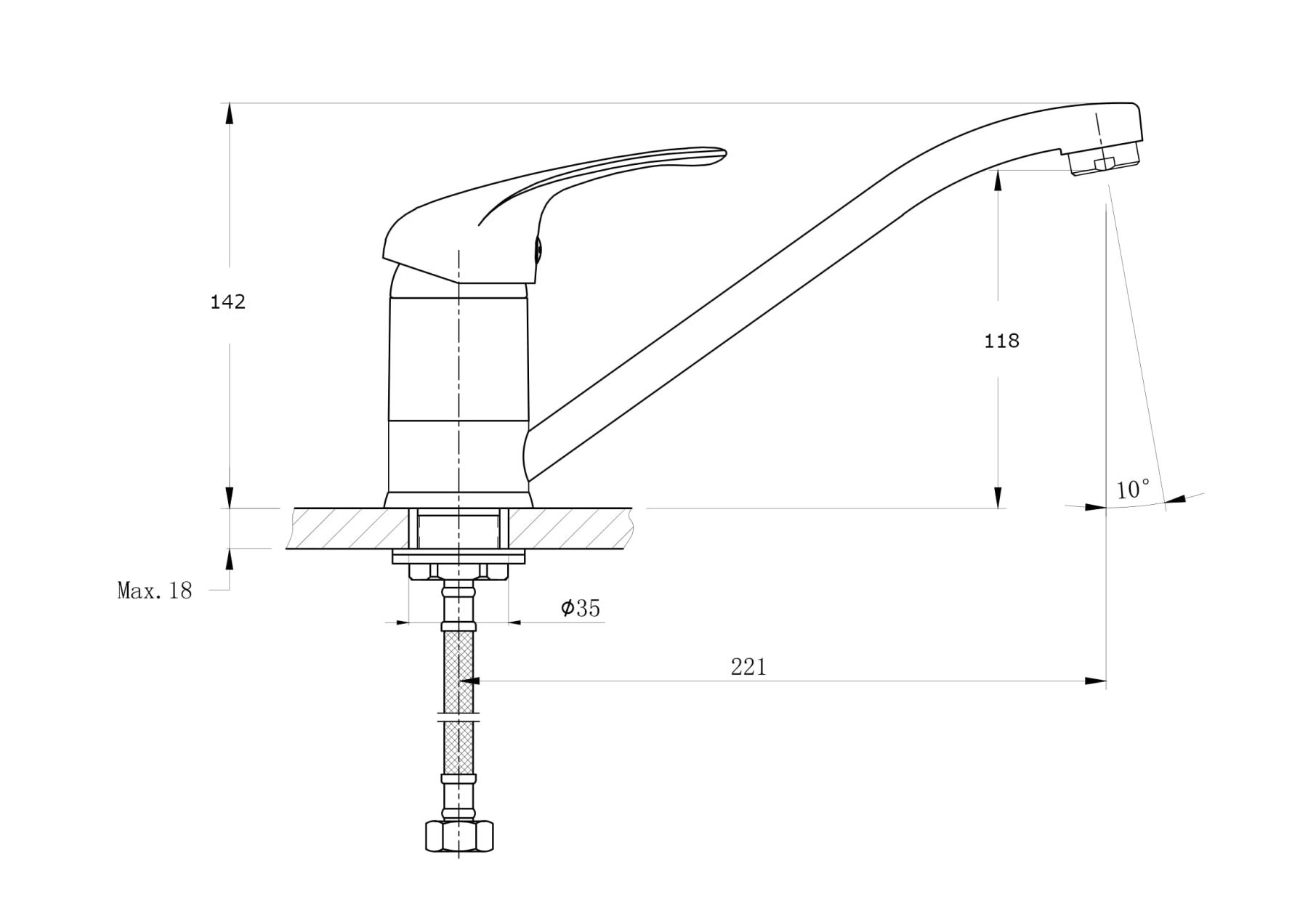 Смеситель для кухни с поворотным изливом RUSH арт.CO4240-27 из коллекции Corsica c металлической ручкой имеет рычажное управление. В смеситель установлен картридж D-40 (RSH202) с керамическими пластинами. Излив поворотный 360гр, 221мм. Высота излива до аэратора 115 мм. Аэратор изготовлен из пластика с нержавеющим корпусом, угол наклона аэратора- 10 гр. В комплекте гибкая подводка с латунными гайками 35см - 2 шт, присоединительная гайка S-30мм, втулка-27мм, фум-лента, индивидуальный пакет, паспорт, гарантийный талон.