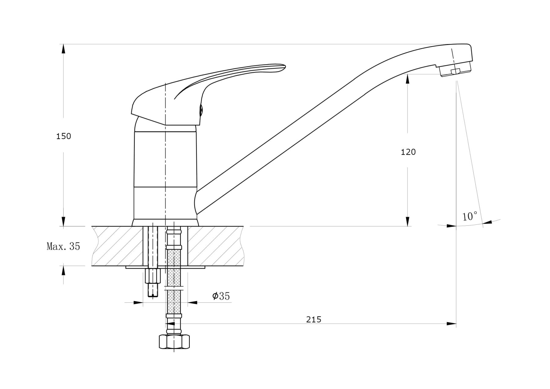 Смеситель для кухни с поворотным изливом RUSH арт.CO4240-28 из коллекции Corsica c металлической ручкой имеет рычажное управление. В смеситель установлен картридж D-40 (RSH202) с керамическими пластинами. Высота смесителя 126 мм. Излив поворотный 360гр, 221мм. Высота излива до аэратора 115 мм. Аэратор изготовлен из пластика с нержавеющим корпусом, угол наклона аэратора- 10 гр. В комплекте гибкая подводка с латунными гайками 35см - 2 шт, универсальная присоединительная группа(шпилька-2шт), фум-лента, индивидуальный пакет, паспорт, гарантийный талон.