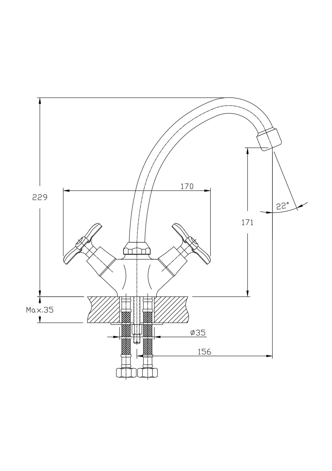Высота смесителя:22.9