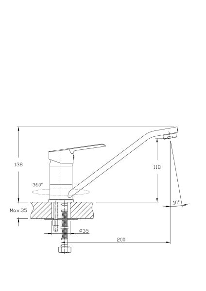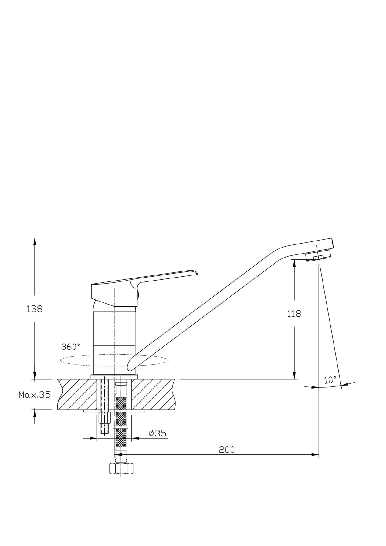 Смеситель для кухни с поворотным изливом RUSH Victori арт.VI7135-25 c металлической ручкой имеет рычажное управление.В смеситель установлен картридж D-35 (RSH102) с керамическими пластинами. Высота смесителя 109 мм. Излив поворотный 360гр, 200 мм. Высота излива до аэратора 118 мм. Аэратор изготовлен из пластика с нержавеющим корпусом, угол наклона аэратора 10 гр.В комплекте гибкая подводка с латунными гайками 35см - 2 шт, универсальная присоединительная группа (шпилька-2шт), фум-лента, индивидуальный пакет, паспорт, гарантийный талон.