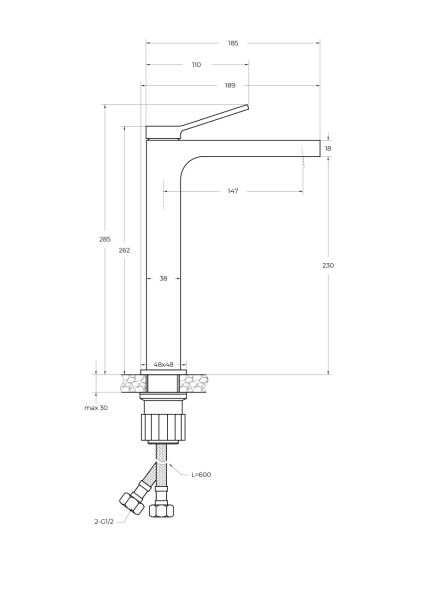 - Гибкая подводка : нержавеющая сталь G1/2, длина 600 мм.