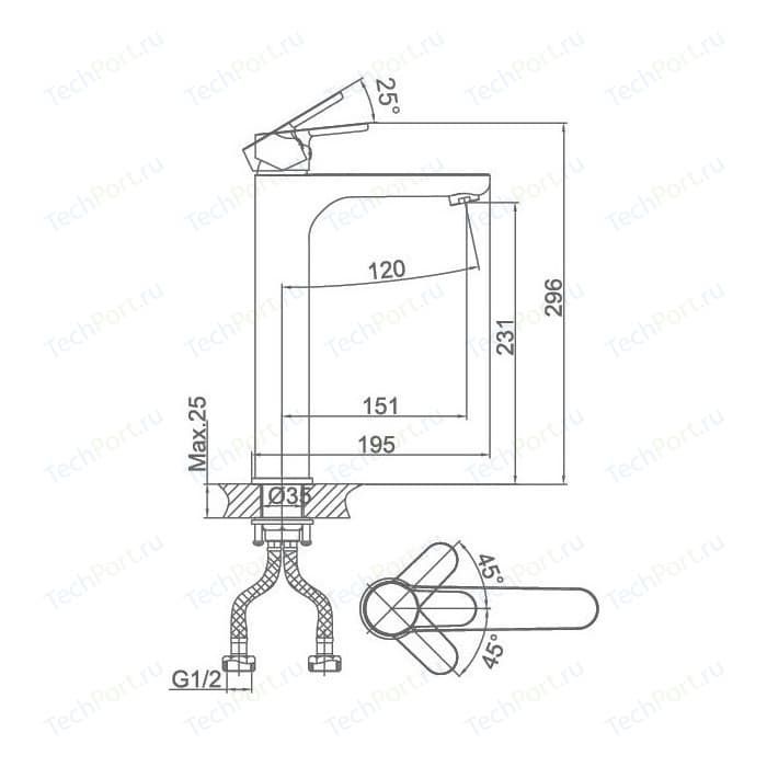 - Подключение: гибкая подводка G1/2.