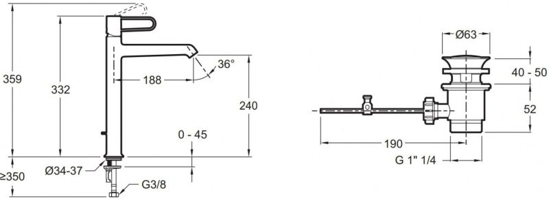 - Керамический дисковый картридж 25 мм интегрирован в корпус смесителя и дает точную регулировку температуры